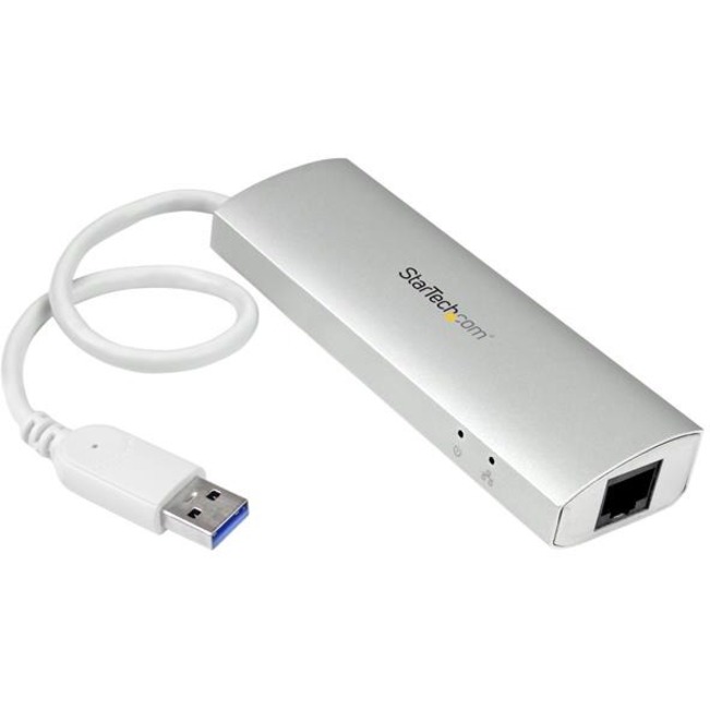 This USB Hub adds three USB-A 3.2 Gen 1 (5Gbps) ports and one Gigabit Ethernet port to a USB-A enabled desktop or laptop computer. The USB Hub connects to a USB-A port on a computer, using the built-in 10.5in (27cm) host cable. The USB hub is backward compatible with USB 2.0 (480Mbps) devices, ensuring support for a wide range of modern and legacy USB peripherals (e.g., thumb drives, external HDDs/SSDs, HD cameras, mice, keyboards, webcams, and audio headsets).The USB hub is compact in size, facilitating portability when travelling.