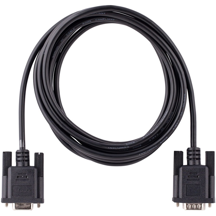 This null modem serial cable features male and female DB9 connectors. It enables a connection between serial devices at a distance of up to 3 meters. The length of the cable allows for flexible serial device setup configuration.