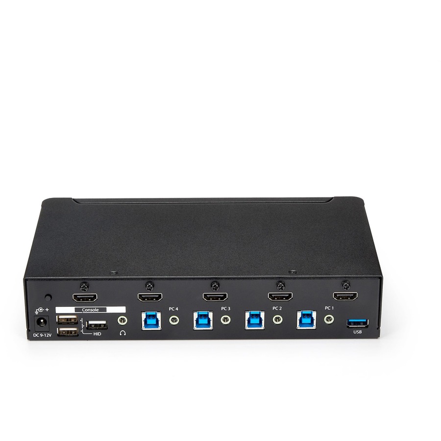 This4-Port USB 3.0 HDMI® KVM switch lets you control four HDMIcomputers with a single monitor, keyboardand mouse. The KVM also features 3.5 mm audio and abuilt-in 3-port USB 3.0 hub.