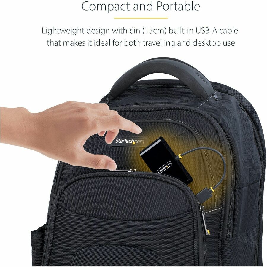 This versatile hub features a built-in 6in (15cm) USB cable and is bus-powered, so it draws its power directly from the computer’s USB port, reducing clutter and simplifying setup by eliminating the need for an external power adapter.