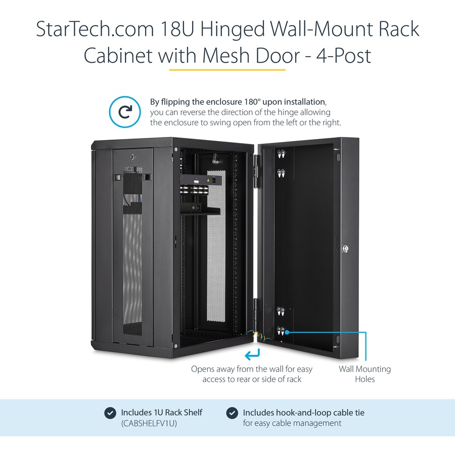 - EASY ACCESS: Wall-mount data rack features a 180° hinged, enclosed and lockable rack design with easy access to the rear of the mounted devices; Flexible locking server cabinet with reversible and removable front door and removable side panels
