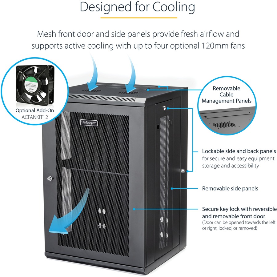 - DESIGNED FOR COOLING: Vented IT rack enclosure has mesh front doors and side panels to provide fresh airflow and supports active cooling with up to four optional 120mm fans (ACFANKIT12)