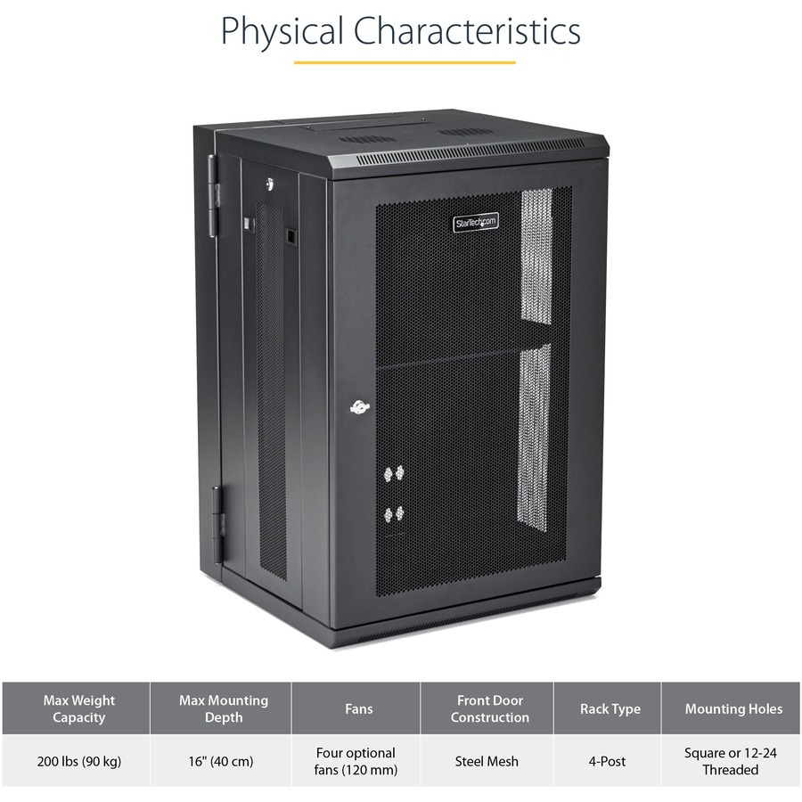 - BUILT TO LAST: The 18U wall-mounted network cabinet offers a 4 post design for additional support of your equipment; Constructed of high-quality SPCC cold-rolled steel for strength and durability with a maximum weight capacity of 198lb (90kg)