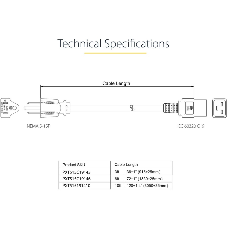 Expertly designed and constructed of high-quality materials, the StarTech.com PXT515C19146 power cord is backed by a lifetime warranty.