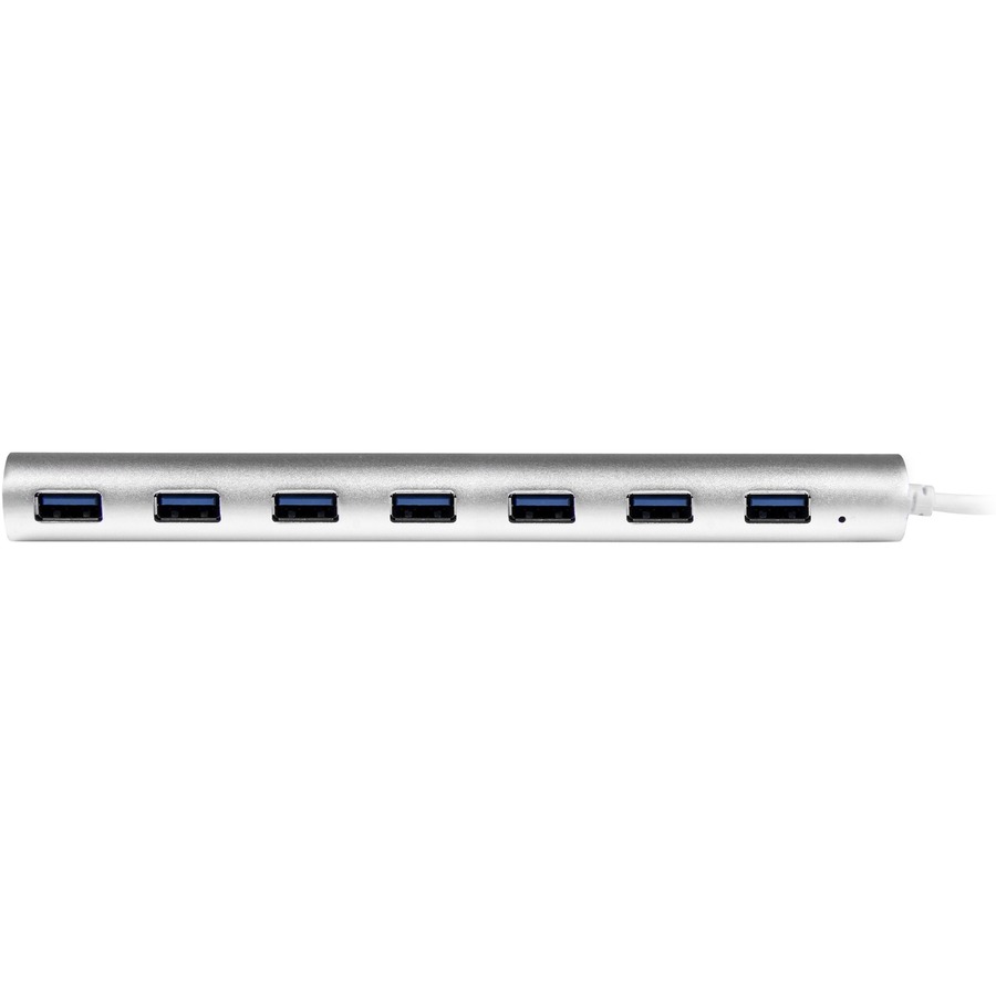 This USB Hub adds seven USB-A 3.2 Gen 1 (5Gbps) ports to a USB-A enabled desktop or laptop computer. The USB Hub connects to a USB-A port on a computer, using the built-in 10.5in (27cm) host cable. The USB hub is backward compatible with USB 2.0 (480Mbps) devices, ensuring support for a wide range of modern and legacy USB peripherals (e.g., thumb drives, external HDDs/SSDs, HD cameras, mice, keyboards, webcams, and audio headsets).The USB hub is compact in size, facilitating portability when travelling.