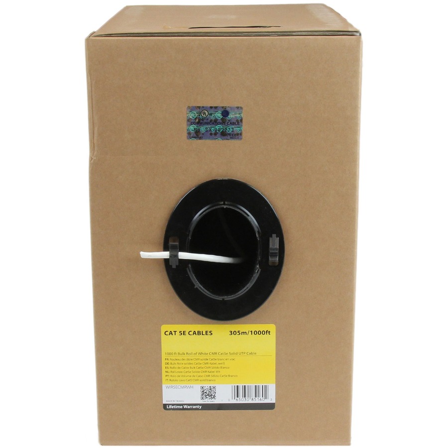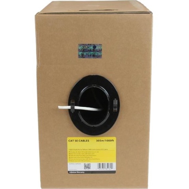 - SPECIFICATIONS: CAT5e; White; 1000 foot (304,8 meter); 10/100/1000Mbps; 350 MHz; PoE; UTP; 24AWG Pure Bare Copper; CMR Rated (Riser); TAA