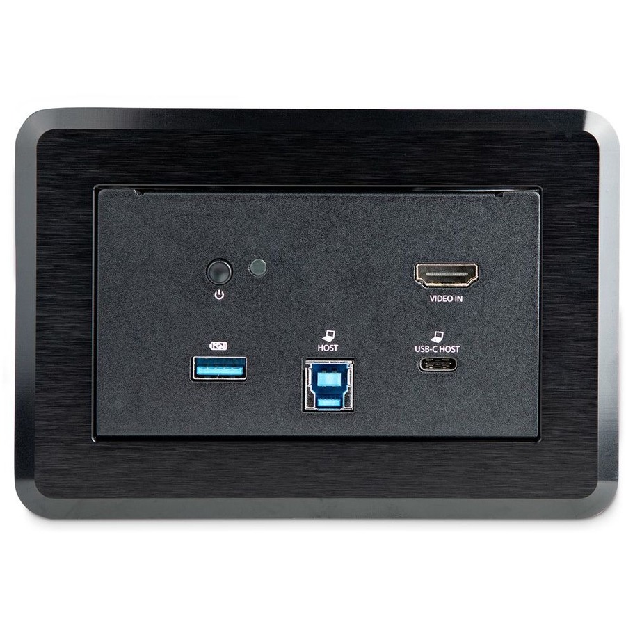 Connect a USB-C or USB-A laptop to the module and access your room’s peripherals, webcams, speakers, mics, network and HDMI display. This conference table AV box and docking station module lets you easily connect your laptop with each video conferencing device in your boardroom. You can collaborate with others in the room and around the globe.