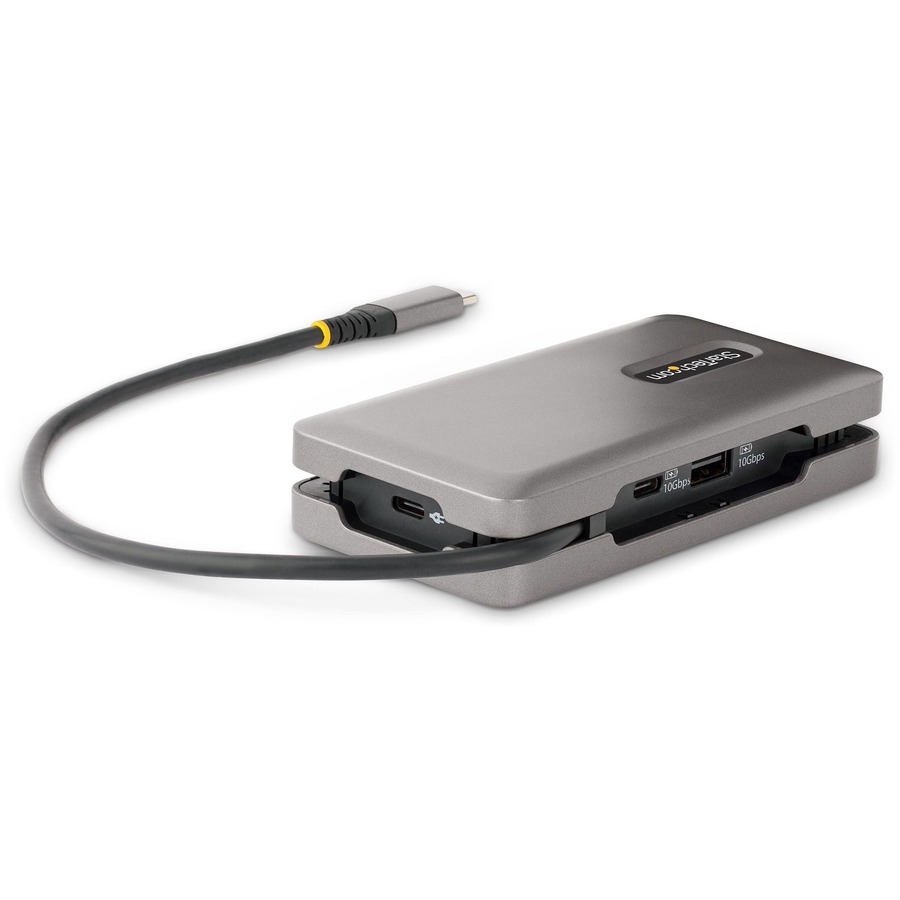 Connect this USB Type-C Multiport Adapter to a USB-C, USB4, or Thunderbolt 3/4™ laptop to enable single-display HDMI 2.0b or DisplayPort 1.4 video output via DP Alt Mode, supporting resolutions up to 4K 60Hz. The USB-C dock works with USB Type-C laptops or tablets, such as a Chromebook, Dell XPS, or MacBook. It features a 3-Port USB 3.2 Gen 2 (10Gbps) Hub (2x USB-A, 1x USB-C), and Gigabit Ethernet. Connect the laptop USB-C power supply to the dedicated USB Power Delivery (PD) 3.0 port, to charge the laptop.
