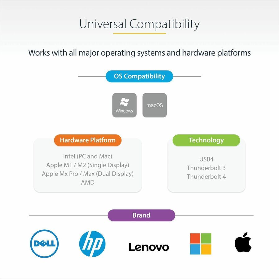 - COMPATIBILITY: This docking station is compatible with Windows, macOS, and Ubuntu; Supports Thunderbolt or USB4 laptops; Dual Display on M1, M2, M3 Max/Pro, M4 Pro/Max MacBooks, and single display on base M-series MacBooks and iPad Pro M1 & later