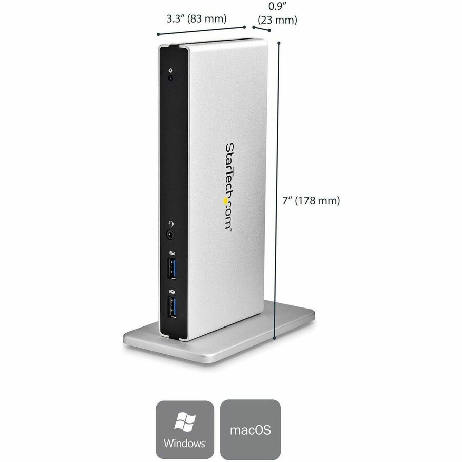 - Dock your USB 3.0 equipped Mac or Windows laptop with support for several dual monitor configurations using the included video adapters