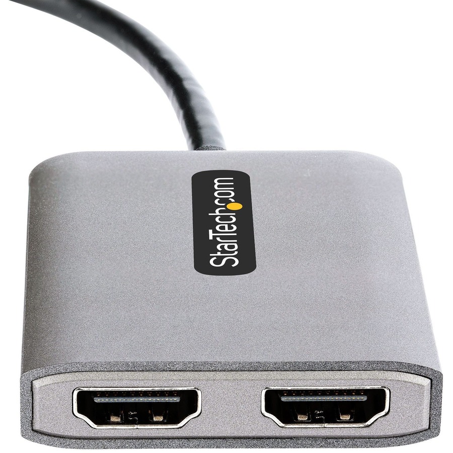 Windows devices that support DP Alt Mode over USB-C feature native support for MST. This USB-C to HDMI hub is compatible with Thunderbolt 4, Thunderbolt 3, and USB4 enabled Windows devices. Plug-and-play installation with no drivers or software required. The 12in (30cm) attached cable provides options for flexible installation configurations, reducing the amount of strain on ports and connectors. Additionally, this dual-monitor splitter is bus-powered, meaning no external power is required.