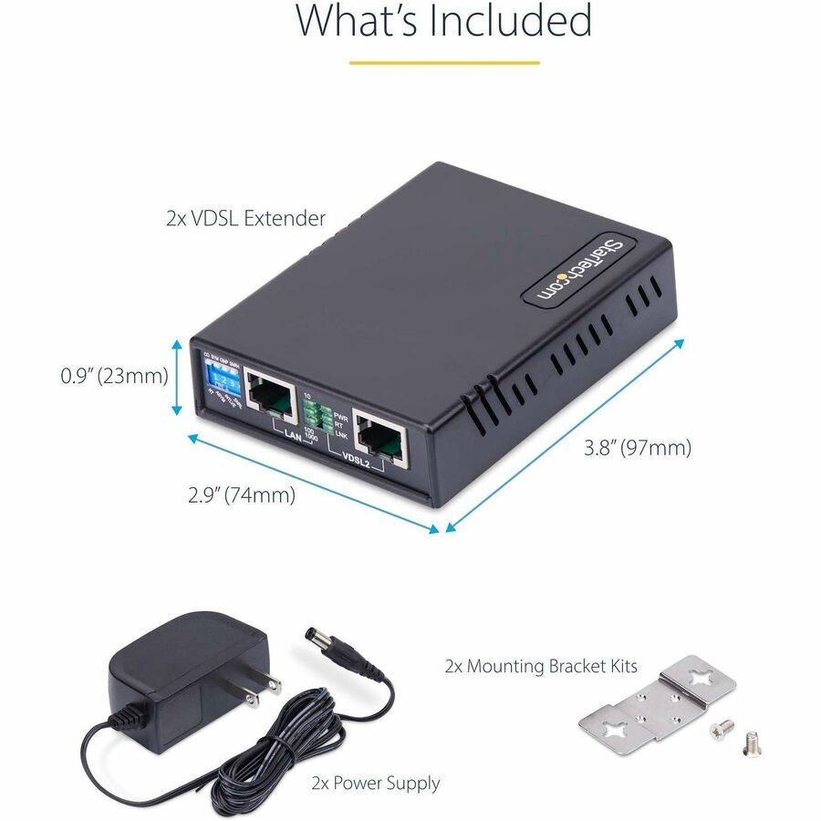 - VERSATILE MOUNTING OPTIONS: TAA-compliant Long Range LAN Booster can be mounted on a wall using the included mounting hardware, or placed on a shelf or other surface; Includes two power adapters, one for each VDSL Extender unit