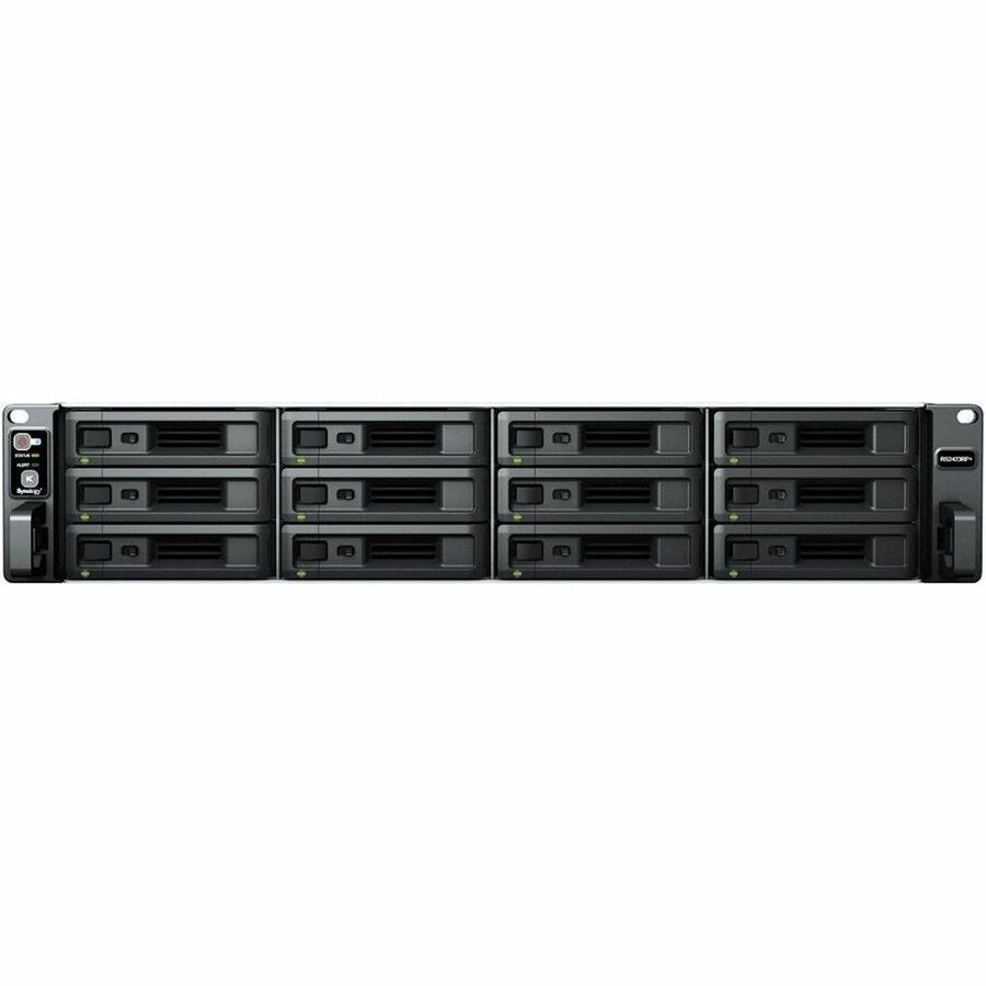 The RS2423RP+ also features redundant and hot-swappable power supply units to protect service continuity in case there are issues with one power source.