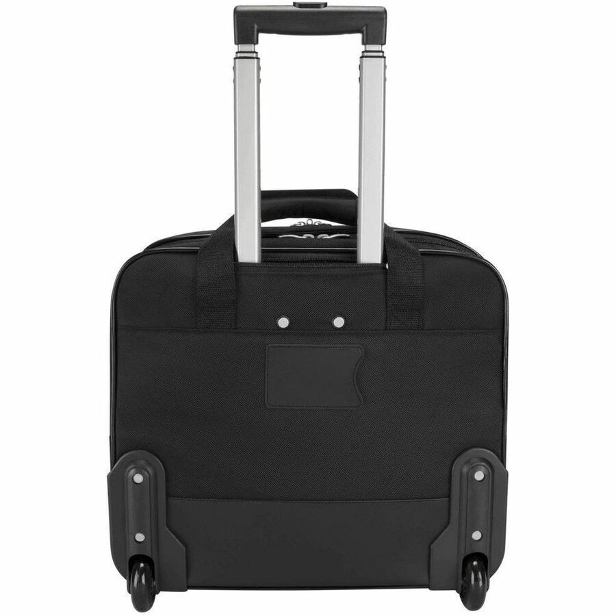 The Targus Rolling laptop Case is designed to protect laptops with up to 16″ screens. The closed cell foam padding keeps your laptop protected while the durable/water resistant 1200D polyester material keeps belongings dry in wet weather. The front zip-down workstation includes pen loops, a business card holder, zippered pocket, cell phone pocket and large pouch to store additional accessories. The Metro Rolling laptop Case also includes a large zippered compartment to store office essentials or clothing for overnight trips. The telescoping handle retracts into a zippered compartment when not in use and the case includes a dual carry handle for added convenience. The Metro Rolling laptop Case is a functional transit case designed for professionals on the go.