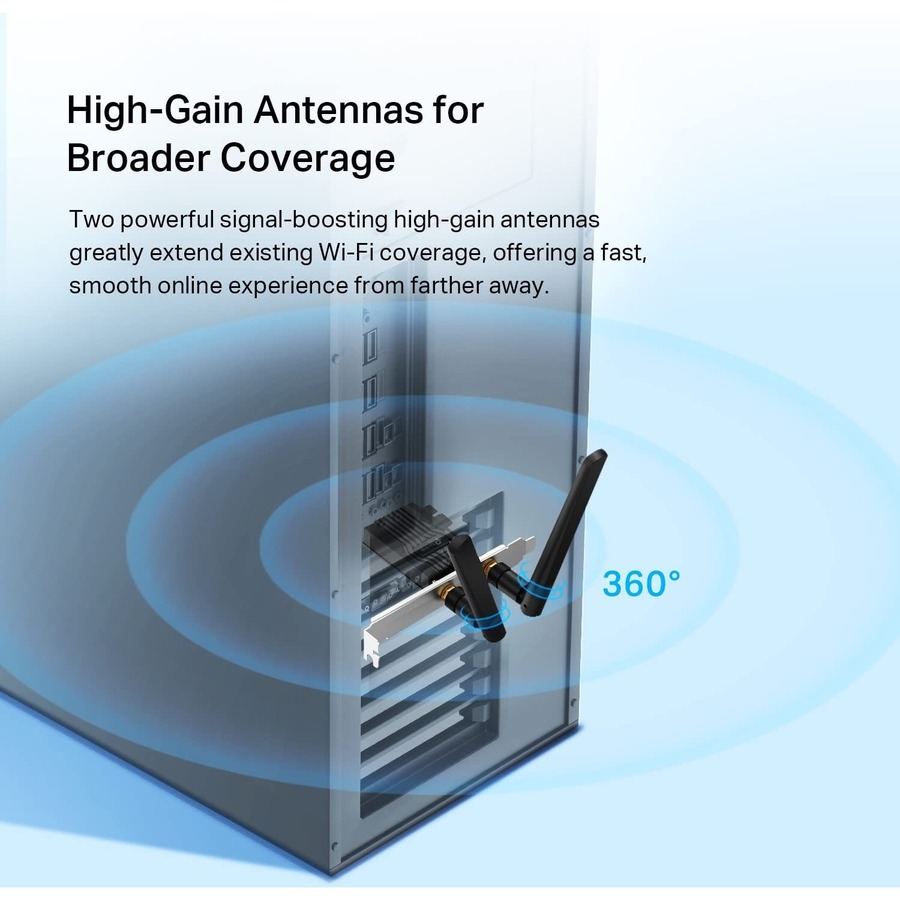 - Bluetooth 5.2 for Greater Speed and Range – Equipped with the latest Bluetooth technology, Archer TX55E achieves 2x faster speeds and 4x broader coverage compared to Bluetooth 4.2 so you can connect your favorite devices such as game controllers, headphones, and keyboards for the ultimate setup.²