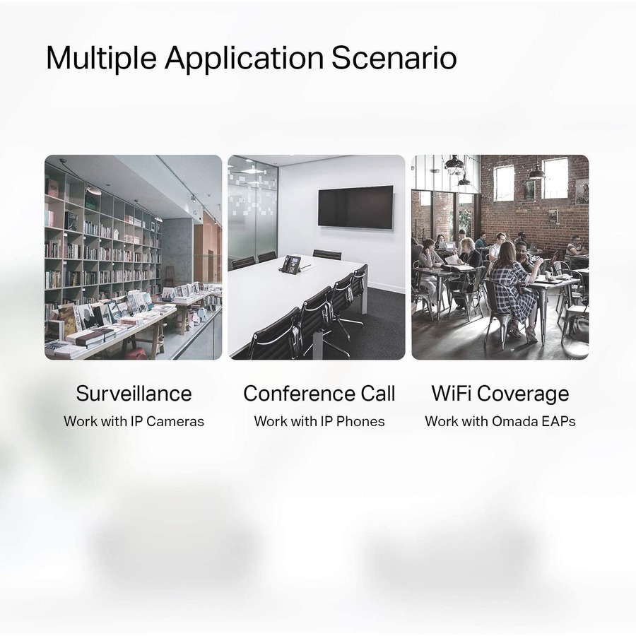 Compliance with the 802.3af/at PoE+ standard supports up to 30 W on each PoE port. The total 65 W PoE power budget for the 8� PoE+ ports opens up a wide range of applications, such as surveillance for offices, dormitories, and small businesses. It is fully compatible with IP cameras, access points, IP phones, computers, printers, and more.