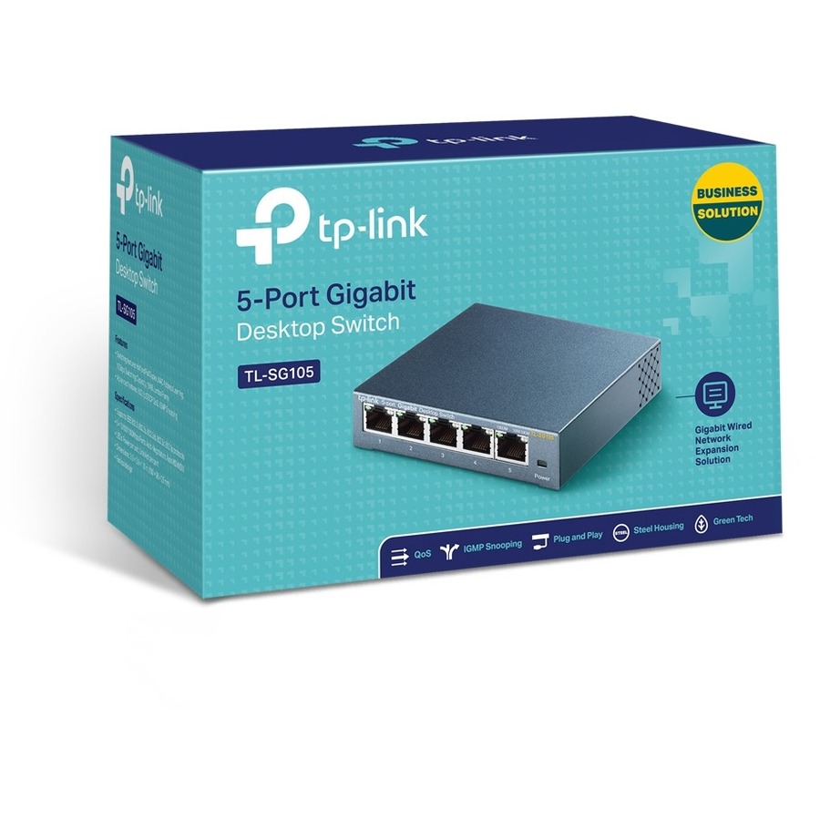 The TP-LINK 5-Port 10/100/1000Mbps Desktop Switch provides you an easy way to make the transition to Gigabit Ethernet. Increase the speed of your network server and backbone connections, or make Gigabit to the desktop a reality. Moreover, TL-SG105 adopts lower power consumption design. With the innovative energy-efficient technology, the TL-SG105 can save up to 65% of the power consumption, making it an eco-friendly solution for your home or office network.