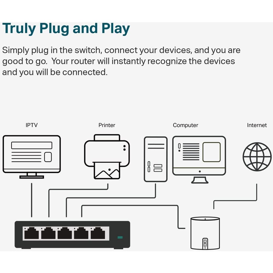 - Plug and Play: A plug-and-play design makes for easy deployment, no technician needed. Auto-negotiation on each port senses the link speed of a network device and intelligently adjusts to ensure full compatibility and optimal performance.