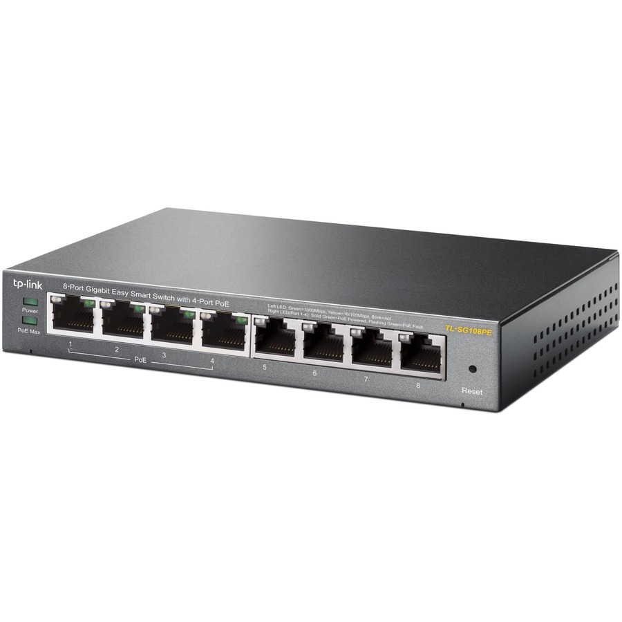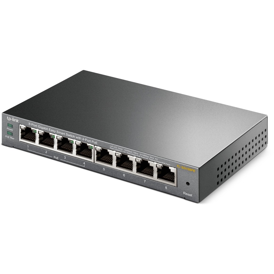 The TL-SG108PE is an 8-port Gigabit Easy Smart Switch with 4 PoE ports, represents a powerful upgrade from an unmanaged switch. It is designed specically for small businesses that require simple network management and PoE function. The TL-SG108PE can connect and power up to four PoE devices, such as wireless access points (APs), IP cameras, and IP phones. Through its web-based user interface and management utility, the TL-SG108PE offers a variety of useful features, including network monitoring, trafc prioritization, and enhanced QoS. Additionally, with port-based, tag-based and MTU VLAN, TL-SG108PE can improve security and meet more network segmentation requirements.