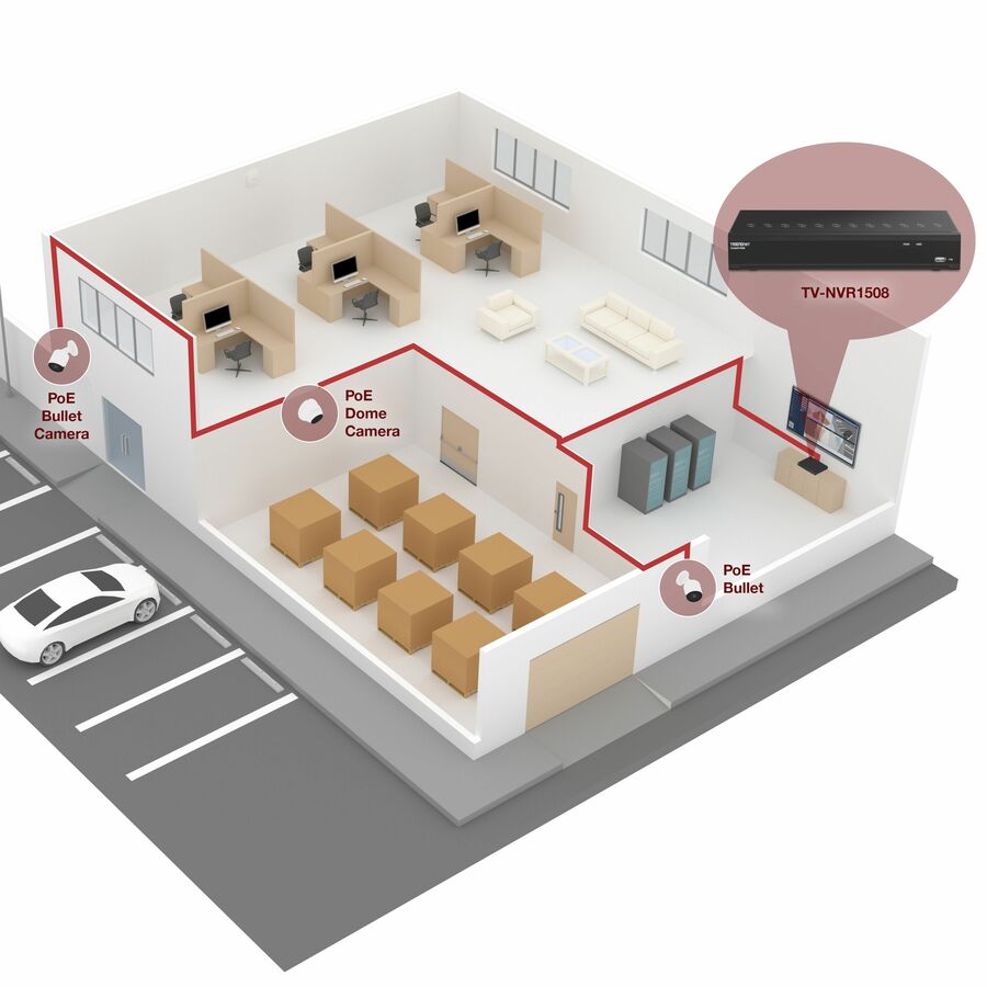 • SIMPLE PLUG & PLAY SETUP: The NVR auto recognizes and powers up to 8 TRENDnet PoE Cameras. Simply connect the compatible cameras and start recording surveillance video.