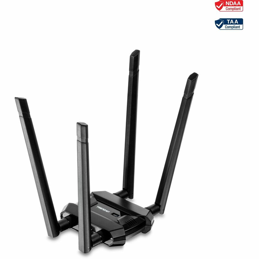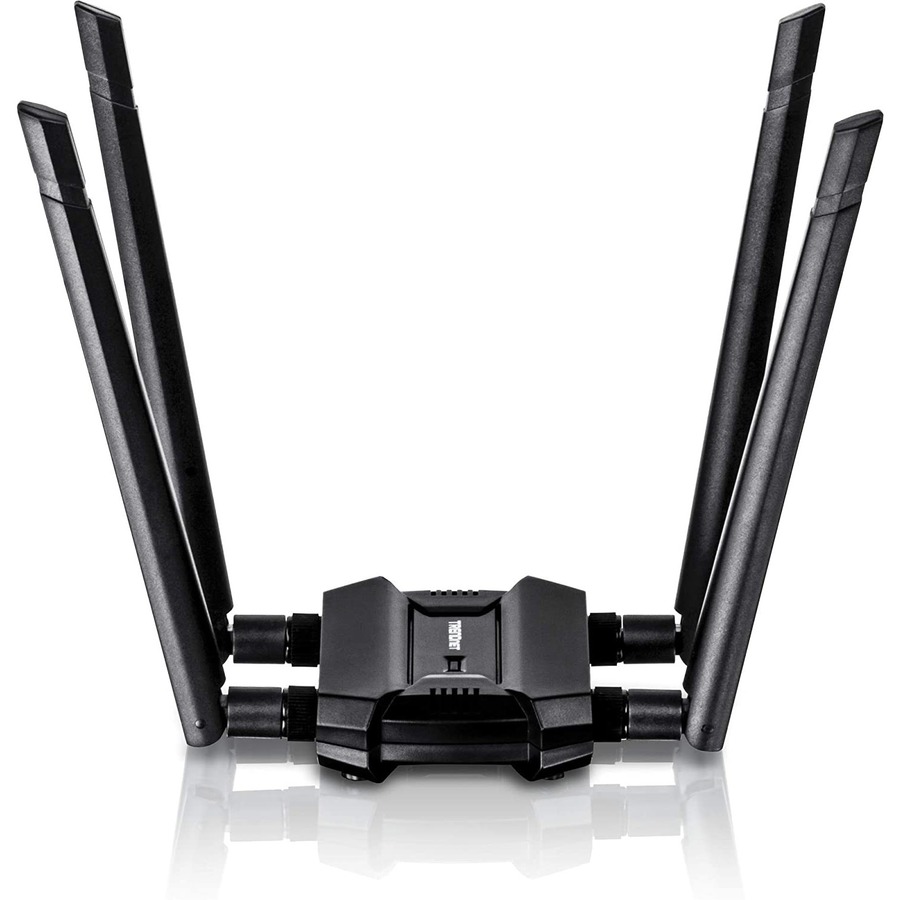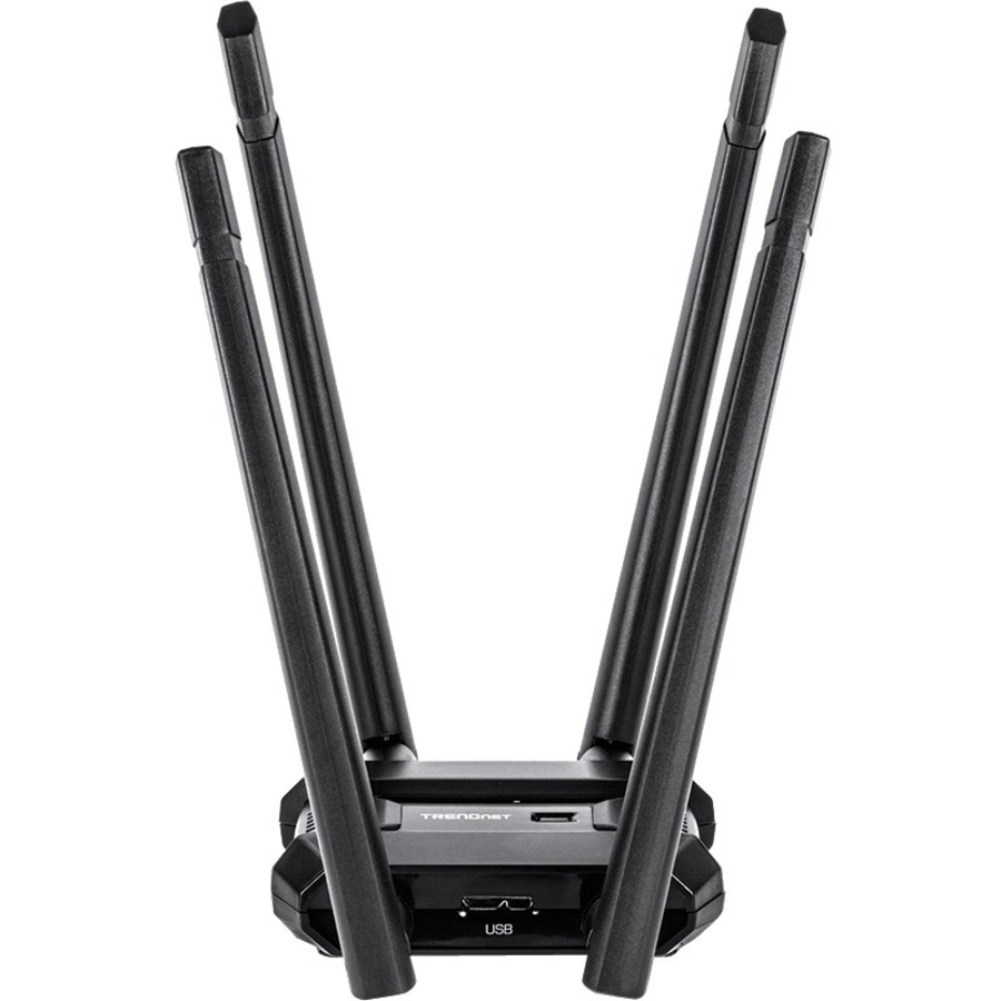 TRENDnet’s AC1900 High Power Dual Band Wireless USB Adapter, model TEW-809UB, upgrades a computer to Wireless AC1900. Quickly connect to a high performance Wireless AC network at 1300 Mbps or to a Wireless N network at 600 Mbps. A high power radio with detachable high gain antennas increase wireless coverage.