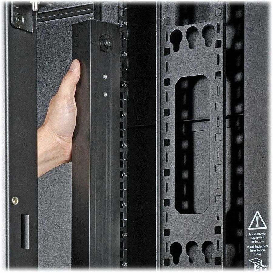 The 36-inch 0U PDU mounts vertically in an EIA-standard 19-inch rack using the included toolless mounting buttons or the included mounting brackets with user-supplied hardware. You may also use the brackets to secure the PDU to the underside of a counter with the addition of two user-supplied screws. Bolt-down retention brackets keep power cords organized and your rack free of clutter.