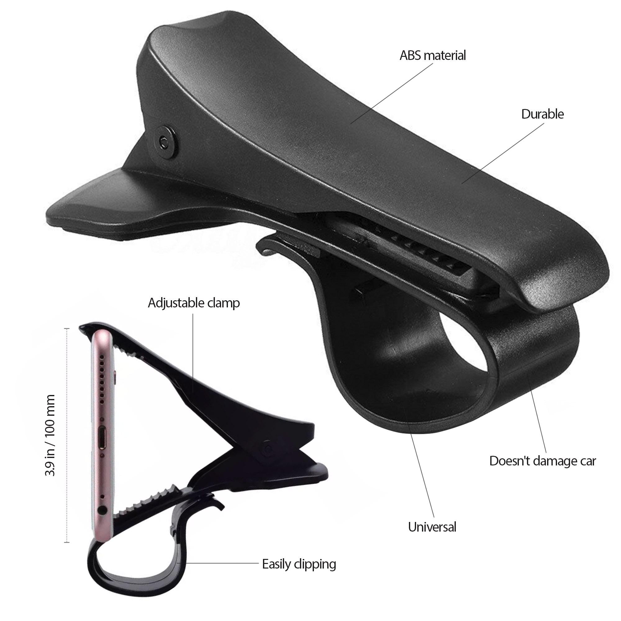 Adjustable clamp can open up to 4.1 inches in width. Dashboard Phone Holder is universal for mobile phones with 4″-6.5″ displays such as: