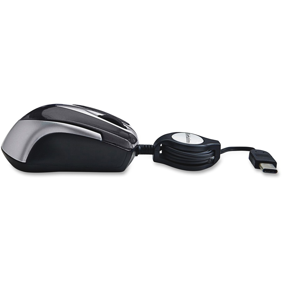 The USB-C Mini Optical Travel Mouse works great on-the-go. Featuring USB-C connectivity, the ultra-portable design takes up little space and is perfect for use with your USB-C equipped notebook. No need to wrap the cord around the mouse or deal with tangles, USB-C Mini Optical Travel Mouse features a convenient retractable USB cable. On a plane or in a car, on the bus or on the train, this tiny mouse is the perfect accessory for business travelers, students and more. Use with Windows XP, Vista and Windows 7 and higher; Mac OS X 10.1 and higher; Linux Kernel 2.6 and higher.