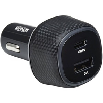Tripp Lite Dual-Port USB Car Charger, 63W Max – USB-C PD 3.0 Up to 60W, USB-A QC 3.0 Up to 18W