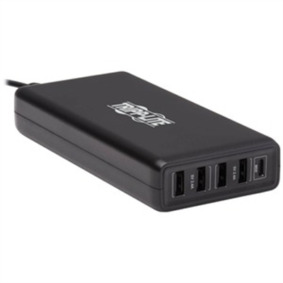Portable USB Charging Station Charges Up to 5 Devices at the Same Time. At home or in the office, this USB charging station provides enough power and ports to keep your devices at 100% capacity. No more peering behind furniture to find an available outlet or unplugging one device to charge another. This compact charging station charges up to five devices at the same time, including smartphones, tablets, MacBooks, Chromebooks and Amazon Kindles, at a maximum of 110W. It doesn?t require a computer, so you can take it anywhere AC power is available. Provides Plenty of Juice for Charging with Auto-Sensing Technology. Four BC 1.2-compliant USB-A ports are split into two banks, each capable of delivering up to 5V 2.4A (12W) of power?enough for fast-charging smartphones, tablets and other mobile devices. Built-in auto-sensing lets the port detect the connected device and automatically adjust the required power level accordingly for optimum charge and compatibility. For devices that are even more powerful, the USB-C port provides up to 20V 4.3A (86W) for battery-intensive devices like the MacBook Pro or Chromebook Pixel. The USB-C port supports PD 3.0 Charging, which is up to four times faster than conventional USB charging. USB-IF Certification Ensures Rigorous Testing and Top-of-the-Line Performance. This cable meets the high standards of USB-IF (USB Implementers Forum, Inc.), a non-profit organization consisting of companies that developed the USB specification. Receiving USB-IF certification means the U280-005-WS4C1 meets the industry’s highest environmental, mechanical and electrical standards. It operates with your USB peripherals, adapters and cables with top efficiency and safety. Easy to Use with the Included Power Cord. To charge your USB devices, simply plug the included four-foot power cord into any standard AC outlet, and connect your devices to the available USB ports. The charger protects against overheating, overcurrent and overcharging?in fact, it stops charging as soon as your devices batteries reach capacity.