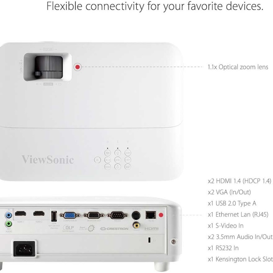 The ViewSonic® PG701WU WUXGA projector features 3,500 lumens, 1920×1200 native resolution, an intuitive, user-friendly design, and a sleek white chassis. Exclusive SuperColor™ technology offers a wide color gamut for beautiful image production in nearly any environment. With vertical keystone correction, and extensive connectivity options, the PG701WU provides flexible and quick set-up. What’s more, an energy-saving SuperEco™ feature reduces power consumption and extends the lamp life by up to 20,000 hours. The PG701WU is the ideal projector for both high-definition presentations and vibrant multimedia entertainment.