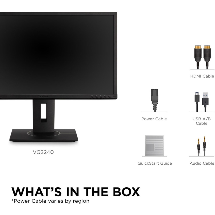 The ViewSonic® VG2240 is a 22” (21.5” viewable) Full HD monitor that includes a full-range of connectivity and ergonomic functionality ideal for your workstation at the office and at home. With SuperClear® MVA panel technology for wide-angle viewing, and a true 8-bit panel with the ability to reproduce 16.7M colors, this monitor delivers incredibly sharp images. Integrated with HDMI, DisplayPort, VGA and 4 USB ports, the VG2240 allows flexible connection to PC systems, laptops and other peripheral devices and accessories. ViewSonic’s exclusive vDisplayManager software provides intuitive presets that deliver optimized screen performance in different applications. In addition, Flicker-Free and Blue Light Filter technology help to eliminate eye strain from extended viewing periods.