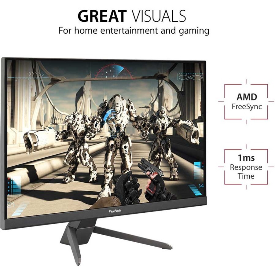 The ViewSonic® VX2767-mhd is a 27″ Full HD price-performance monitor built for gaming and entertainment. Equipped with AMD FreeSync, this monitor’s variable refresh rate capabilities virtually eliminate screen tearing and stuttering for fluid game play during fast-paced action scenes. An ultra-fast 1ms response time (MPRT) provides smooth screen performance free from blurring or ghosting. For a game winning competitive edge, a Game Mode hot key optimizes gameplay for FPS, RTS and MOBA. On top of that, a black stabilization function helps you target enemies lurking in the dark, while enabling the monitor to maintain brilliantly rich colors and contrast for total immersion. Flexible connectivity options such as DisplayPort, HDMI, and VGA allow you to connect to your dedicated graphics card and gaming console. The VX2767-mhd features all the perks needed to dominate all your gaming and entertainment quests.