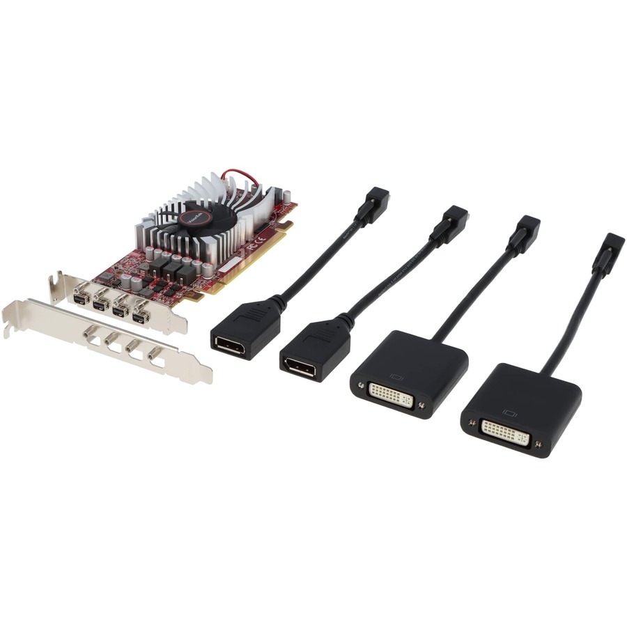 The RX 550 4M fits a full height or small form factor system an featuring 4 mini DisplayPort ports in a single slot.