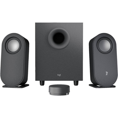 Logitech Z407 Bluetooth computer speakers with subwoofer and wireless control – gives you immersive sound, big bass, and clarity. Connect with Bluetooth, micro USB, and audio jack, and control with the wireless dial. IMMERSIVE SOUND – The expertly tuned 2.1 speaker system features 80 watts of peak power and 40-watt RMS. Digital signal processing offers a balanced sound profile and enhanced bass, so you hear everything across the sound spectrum. Experience immersive, lifelike sound?from crisp high notes to powerful mid and low-range notes?with no compromises on the rich, deep bass. STRONG BASS WITH CLARITY – 20-watt bass with digital signal processing produces deep yet clear bass and superior sound performance. The ported, down-firing subwoofer adds ?boom? to music, movies, and gaming while maintaining a rich, crisp sound. ONE DIAL FOR TOTAL WIRELESS CONTROL – With a 30 m line of sight range, the wireless control dial lets you adjust your sound from across the room. Tap it and spin it to play, pause, and mute?and control volume and bass. Do it all from the control dial. It?s easy, and you don?t even have to get off the couch. DUAL-POSITION SPEAKERS – Sleek, oval-shaped satellite speakers come in a refined graphite gray. Lay them vertically or horizontally. Move and curate to fit your aesthetic preference. MULTIPLE WAYS TO CONNECT AND SWITCH – You?ve got options. Connect up to three devices via Bluetooth, micro USB, and the 3.5 mm input. The source selection button on the bottom of the dial switches between wired (3.5 mm and micro USB) connections. Quickly switch back to Bluetooth by pressing the Bluetooth button.